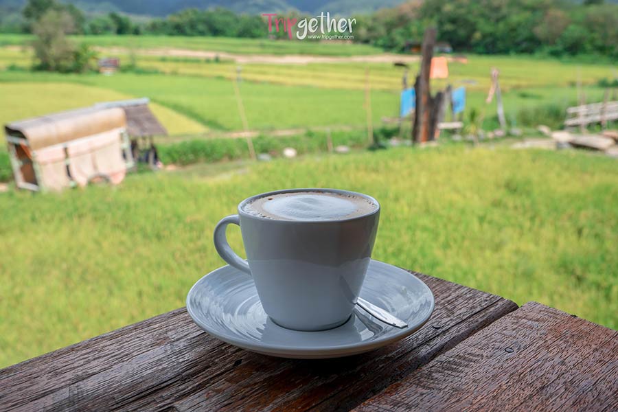 กาแฟสักแก้วกลางทุ่งนาแบบนี้ก็ฟินดีนะ