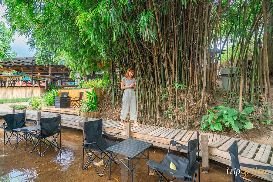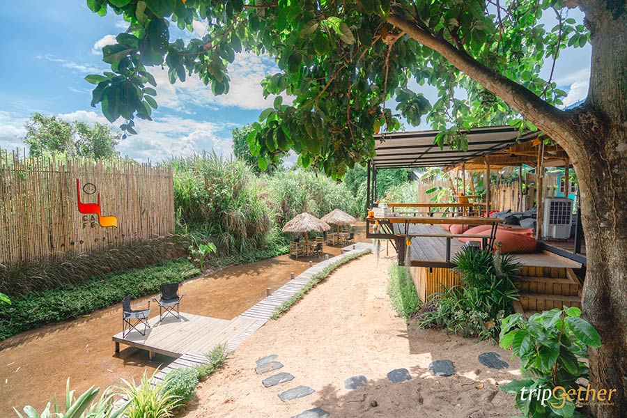 เก็บของและเช็คเอาท์ออกจากโรงแรมเรียบร้อย ก็พร้อมเที่ยวกันต่อยาวๆ มาเริ่มด้วยการเช็คอินคาเฟ่ชิลล์ๆ ที่ LOL campcafe เป็นคาเฟ่น้องใหม่ สไตล์แคมป์ปิ้งริมน้ำ บรรยากาศร่มรื่น มีลำธารไหลผ่าน ส่วนที่นั่งก็มีให้เลือกเยอะตั้งแต่โซนที่นั่งด้านบน เป็นแบบบีนแบคและนั่งห้อยขา ส่วนด้านล่างเป็นที่นั่งแบบเก้าอี้สนาม มีทั้งนั่งริมน้ำและนั่งกลางลำธาร แน่นอนว่าอากาศร้อนๆ ก็ต้องเดินตรงไปนั่งจุ่มเท้าเย็นๆ บอกเลยว่าฟีลดีมาก มีลมพัดโกรกตลอด เหมาะกับการมานั่งพักเหนื่อยจริงๆ