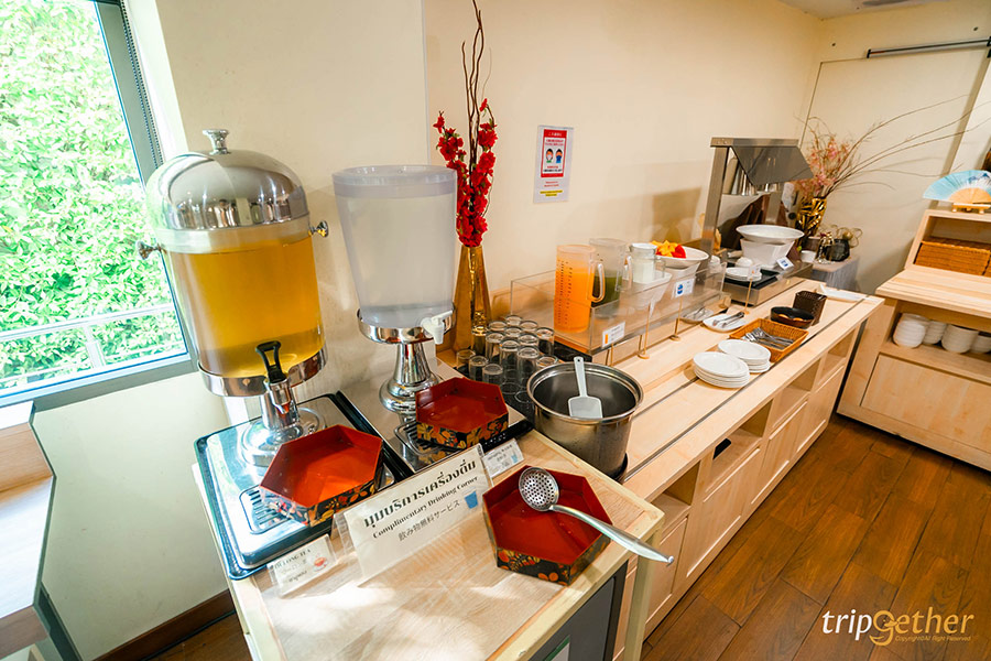 ตื่นเช้ามาวันที่ 2 นอนสบายพร้อมเที่ยวแบบจัดเต็มสุดๆ ก่อนอื่นเลยเราก็ลงไปกินมื้อเช้ากันที่ห้องอาหารชั้น 1 สำหรับอาหารเช้าจะเริ่มตั้งแต่ 05.00 – 09.00 น. เมนูอาหารจะต้องสั่งกับพนักงานเท่านั้น มีให้เลือก 2 แบบก็คือ เซ็ตอาหารญี่ปุ่นและเซ็ตอาหารอเมริกัน รวมถึงมีบุฟเฟ่ต์เครื่องดื่ม ขนมปัง และผลไม้ที่สามารถตักได้ด้วยตัวเอง ใครที่สั่งอาหารเช้าแล้วก็เลือกได้ว่าจะเอาไปกินบนห้องหรือกินที่ห้องอาหาร ซึ่งห้องอาหารก็จะมี 2 ส่วน คือ แบบส่วนกลางและแบบห้องส่วนตัว ถ้ามากันหลายคนและต้องการความเป็นส่วนตัว สามารถแจ้งพนักงานขอเปิดห้องส่วนตัวได้เลย