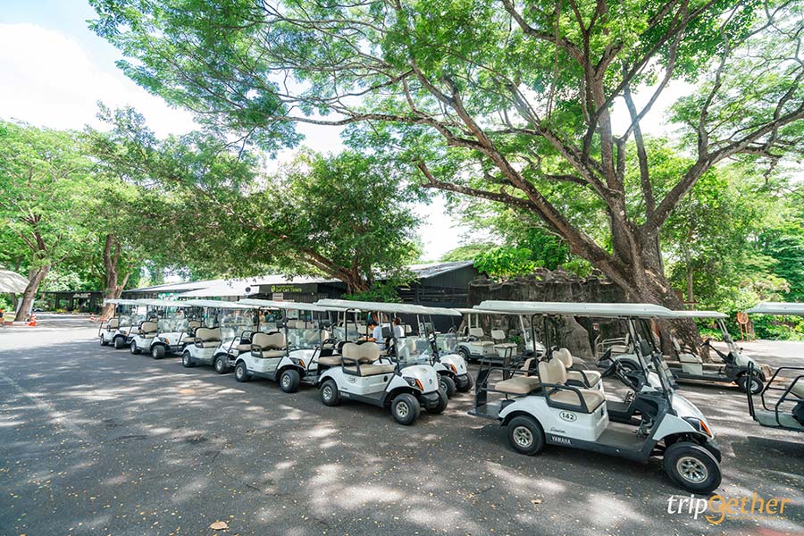 สวนสัตว์เปิดเขาเขียวมีขนาดใหญ่มากกินพื้นที่กว่า 5,000 ไร่และแบ่งออกเป็นหลายๆ โซน ดังนั้นใครที่มาแล้วอยากเที่ยวให้ทั่วก็แนะนำให้เช่ารถกอล์ฟหรือไม่ก็นั่งรถราง อย่างเราเลือกเช่ารถกอล์ฟ จะได้แวะดูและถ่ายรูปตามจุดต่างๆ ได้ตามที่ต้องการ สำหรับค่าบริการรถกอล์ฟ ราคา 500 บาท/2 ชั่วโมง และค่าประกันอีก 50 บาท/คัน ถ้าใครขับเกินเวลาที่กำหนดก็ต้องเสียค่าปรับเล็กน้อย