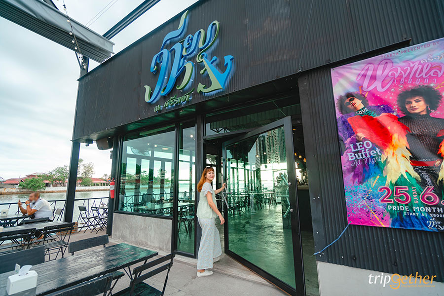 มาปิดทริปด้วย ท่าช้างบางแสน ร้านอาหารกึ่งบาร์สุดฮิตริมทะเล ใครจะมาแนะนำต้องโทรจองโต๊ะล่วงหน้าไว้ก่อนเลย ซึ่งสามารถจองล่วงหน้าได้ 7 วัน ส่วนถ้าจะ walk-in เข้ามาก็ได้เหมือนกัน แต่จะต้องเสียเวลานั่งรอกว่าโต๊ะจะว่าง และเห็นว่าฮิตขนาดนี้ก็ไม่แปลกใจเลย เพราะแค่เดินเข้ามาก็สัมผัสได้ถึงความชิลล์ มีลมทะเลพัดเข้ามาตลอด และจากร้านเดินไปไม่กี่ก้าวก็เจอหาดทรายและน้ำทะเล แถมดีไซน์ร้านก็เข้ากับบรรยากาศของท้องทะเล เน้นโทนสีน้ำตาลตัดกับสีฟ้าของน้ำ ถ่ายรูปมาแล้วสวยคุมโทนสุดๆ