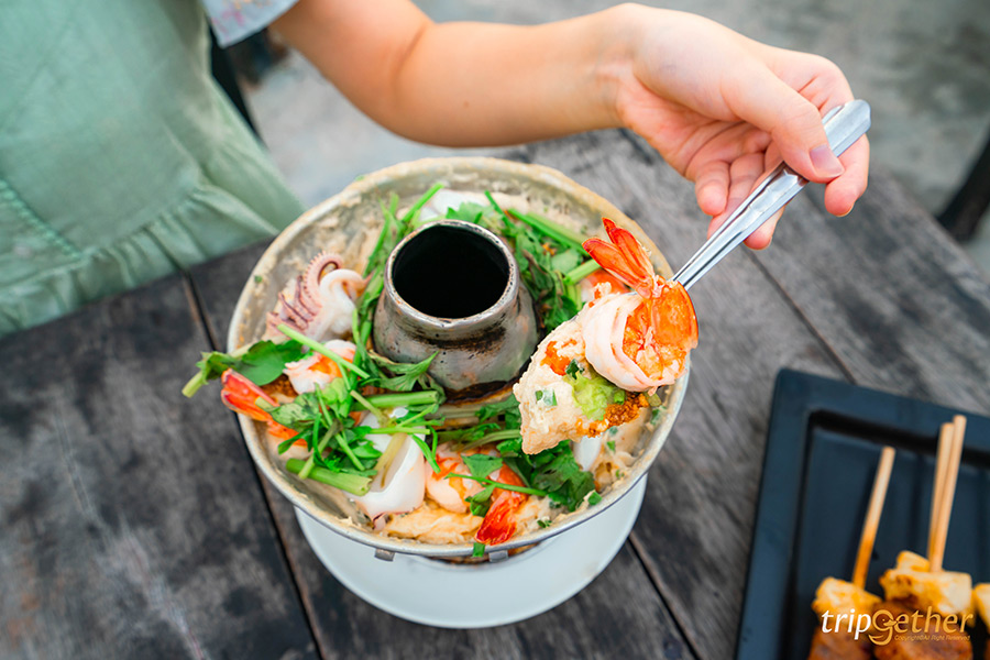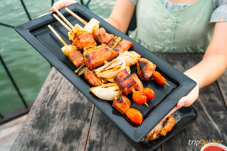 สำหรับเมนูทางร้านส่วนใหญ่จะเป็นแนวกับแกล้มหรือกินเล่น แต่ถ้าใครอยากกินอาหารตามสั่งก็มีเหมือนกัน ส่วนเมนูที่มาแล้วต้องสั่งเลยก็คือ ไข่ตุ๋นทะเลหม้อไฟ ราคา 250 บาท เนื้อนุ่มฟู ปรุงรสมาอย่างกลมกล่อม อัดแน่นด้วยกุ้งและหมึกตัวโตๆ หรือจะกินเล่น แต่อร่อยไม่ธรรมดาอย่าง ปีกไก่คลุกฝุ่น ราคา 119 บาท สุดท้ายเป็น บาร์บีคิวหมู ราคาไม้ละ 52 บาท ได้หมูมาชิ้นใหญ่มาก น้ำซอสฉ่ำๆ อร่อยแบบกินได้เพลินๆ