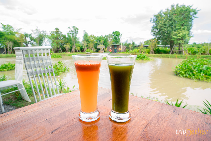 ไม่ได้มีแค่อาหารที่ครีเอทและดีต่อสุขภาพ แต่เครื่องดื่มทางร้านก็สร้างสรรค์และหลากหลายไม่แพ้กัน ใครชอบดื่มพวกน้ำผักน้ำผลไม้หรือคอมบูชาก็สามารถสั่งได้เลย มีหลายสูตรให้เลือกตามที่ต้องการ ใครที่เป็นหวัดบ่อยๆ ร่างกายไม่ค่อยแข็งแรง แนะนำเมนู น้ำสกัดเย็น สูตรต้านหวัด ราคา 55 บาท แก้วนี้ประกอบด้วยแครอท แอปเปิ้ลเขียว และส้ม ดื่มเข้าไปคำแรกเข้มข้นมาก มีความหวานอมเปรี้ยวจางๆ ส่วนอีกเมนูน้ำสุขภาพก็คือ น้ำเคลสกัด สูตรน้ำผึ้งมะนาว ราคา 55 บาท ต้องบอกก่อนเลยว่าตอนแรกก็กลัวๆ เพราะเคยกินน้ำผักแล้วมีกลิ่นเขียวๆ แต่แก้วนี้ให้ผ่านเลย ไม่มีกลิ่นของผักสักนิด แถมยังหอมน้ำผึ้งอ่อนๆ รสชาติเข้ากันลงตัวมาก