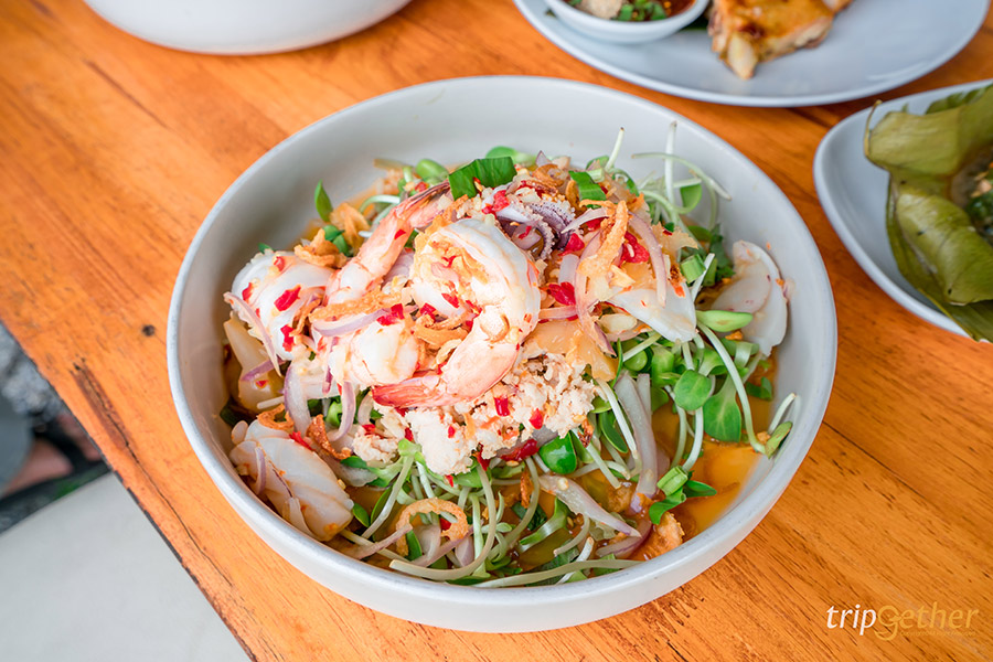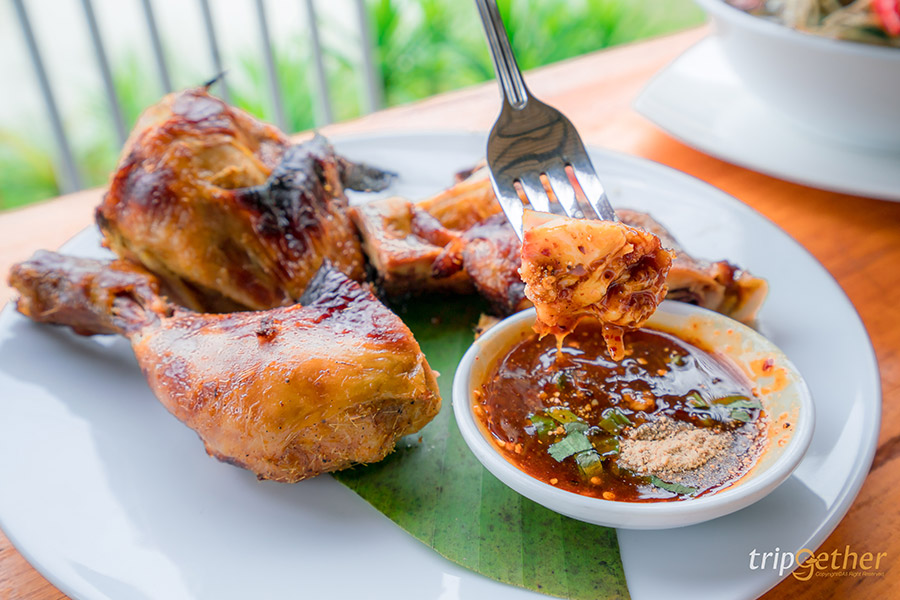 มาพูดถึงเมนูอาหาร สิ่งที่ชอบก็คือคอนเซ็ปต์ของร้านที่เลือกใช้วัตถุดิบท้องถิ่นและใช้ผักออร์แกนิคที่ปลูกเองมาเป็นส่วนประกอบในทุกเมนูอาหาร เรียกได้ว่าตอบโจทย์สายเฮลตี้มาก สำหรับเมนูทางร้านจะเป็นสไตล์อาหารไทยโบราณ ทุกจานปรุงอย่างพิถีพิถัน มีผักหลากหลายชนิดให้ได้เลือก รสชาติถือว่ากินง่าย อย่างเราที่ไม่ได้ชอบกินผักก็ยังสามารถเอ็นจอยกับมื้ออาหารนี้สุดๆ สำหรับเมนูที่แนะนำก็มี น้ำพริกปลาทู (คีโต) ราคา 130 บาท ใครที่กินคีโตต้องสั่งเลย มาเอาใจสายแซ่บด้วย ยำยกสวนเยาวพา ราคา 210 บาท น้ำยำครบรส เผ็ดกำลังดี ที่สำคัญเครื่องแน่นมาก และอีกเมนูห้ามพลาด ไก่อบโอ่ง ราคา 190 บาท เนื้อไก่นุ่มและฉ่ำมาก