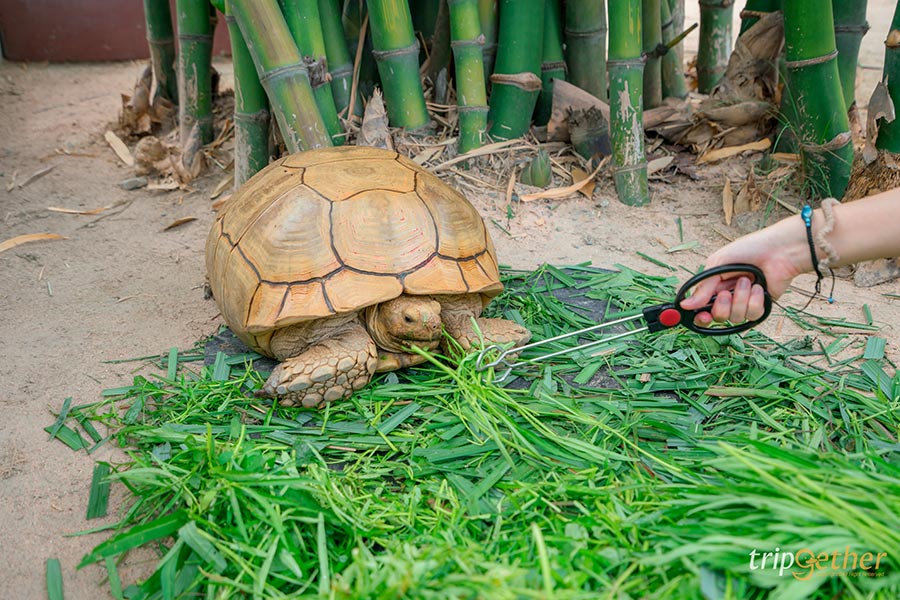 ไฮไลท์ก็คือป้อนอาหารยีราฟ สำหรับอาหารนี้สามารถซื้อได้ที่หน้าโซนยีราฟ ราคาเพียง 30 บาท ก็ได้มาเป็นกำใหญ่ๆ พี่พนักงานบอกว่าเวลาป้อนให้จับก้านไว้แน่นๆ เพราะยีราฟจะกินแต่ใบเท่านั้น และแนะนำว่าค่อยๆ ป้อนที่ละก้าน อย่ายื่นไปทีเดียวกำใหญ่ ไม่งั้นน้องจะดึงแรงและทำให้เราเจ็บมือได้