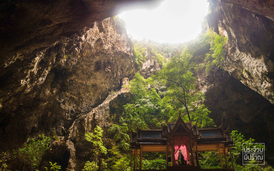 เดินลงมาแล้วลัดเลาะไปตามทางอีกหน่อย คุณจะได้พบกับไฮไลท์ของที่นี่.. นั้นคือ “พระที่นั่งคูหาคฤหาสน์” ที่ตั้งตระง่ากลางถ้ำ พร้อมกับมีแสงส่องลงมา ข้างบนเป็นสะพานหินอยู่ทางปากปล่อง เรียกว่า “สะพานมรณะ” มันช่างเป็นอะไรที่เพลินตา จริงๆครับ แถมข้างในนี่เย็นสบายมากๆเลย ใครได้มาที่ปราณบุรีก็อย่าลืมแวะเข้ามาที่นี่นะครับ