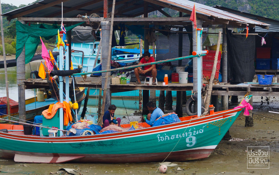 ที่นี่เราจะพบกับเรือประมงจำนวนไม่น้อยเลยทีเดียวที่กำลังจอดอยู่ริมฝั่ง มองไปไกลๆเห็นลุงคนนึงกำลังทำอะไรกับเรือ.. รออะไรละ จู่โจมสิครับ.. พุ่งตรงไปถามลุงว่ากำลังทำอะไร..