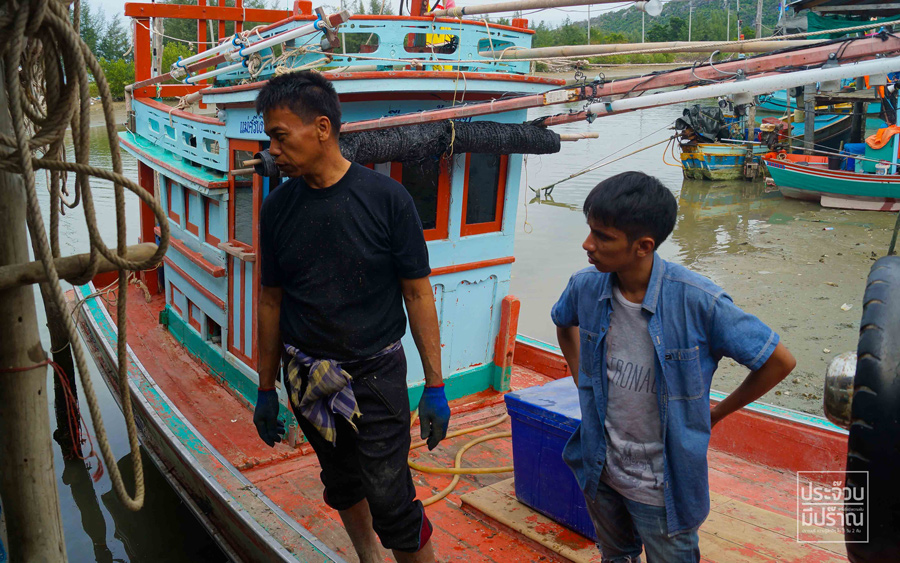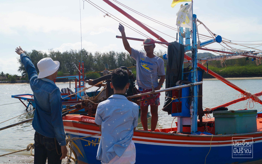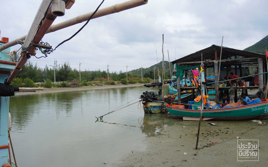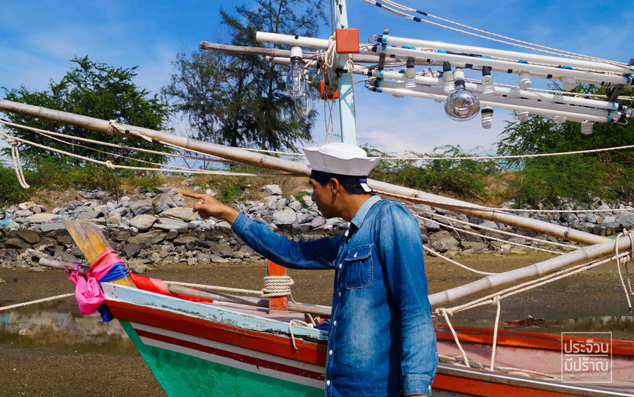 พบว่าลุงกำลังซ่อมเครื่องเรืออยู่ครับ เราก็ถามไปเรื่อยว่าเป็นเรืออะไร จับอะไร และพบว่าเป็นเรือประมงหาหมึก ซึ่งที่ปราณนี่ก็เรื่องลือเรื่องหมึกไม่น้อยเลย..
