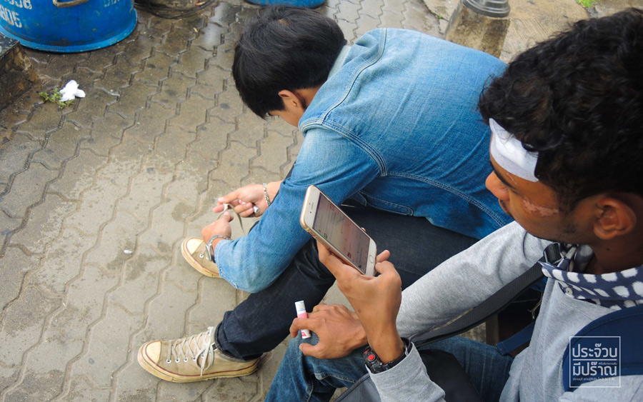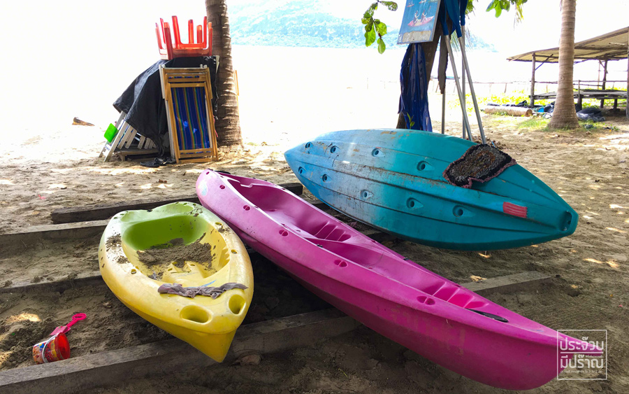 ที่นี่คนเยอะมาก จะเยอะเป็นพิเศษ คนที่มาก็จะมีโต๊ะมีเก้าอี้ให้เช่า ถ้าไม่ติดทะเลก็ตัวละ 20 บาท ถ้าติดทะเลก็ตัว 30 บาท พวกผมก็เลยเช่าสุดเขตของ 20 บาท เอาให้ใกล้ทะเลมากที่สุด
