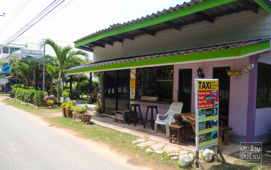 ใช้เวลาประมาณครึ่งชั่วโมง กับระยะทาง ประมาณ 25 กิโล ก็ถึงโรงแรมที่เราจองไว้ นั่นคือโรงแรมบ้านรักทะเล..