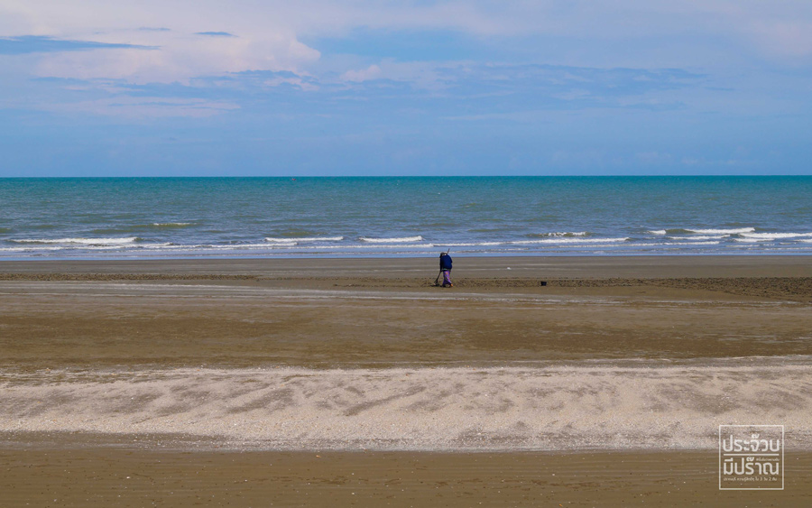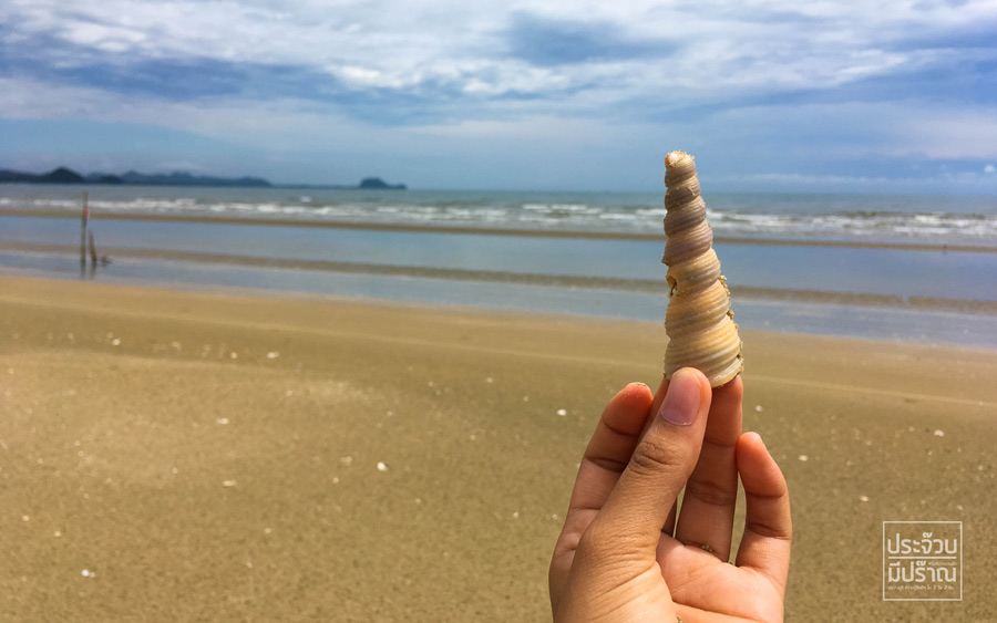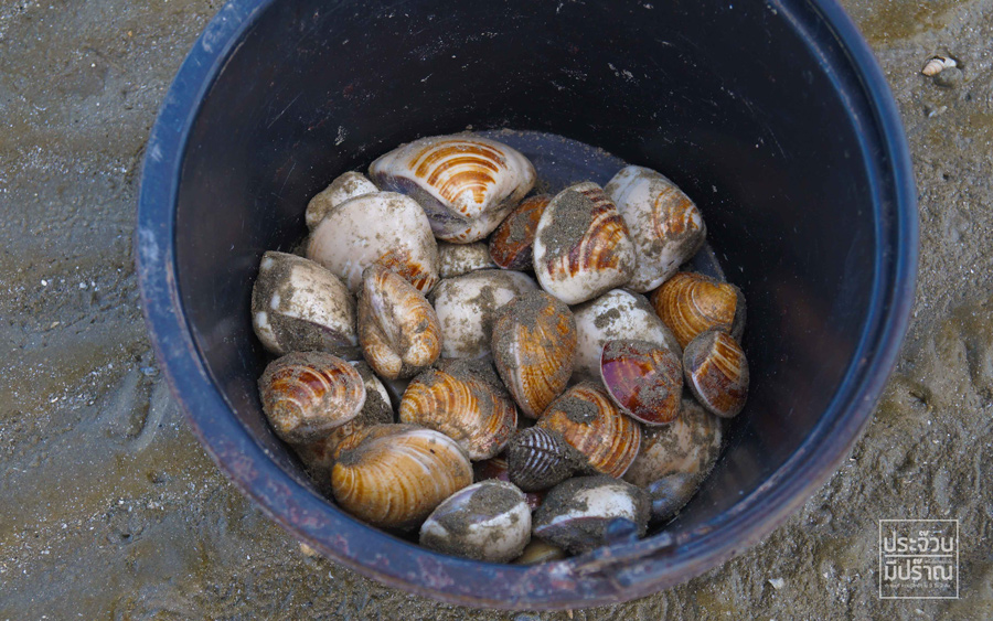 ระหว่างทางก็เจอป้ากำลังทำอะไรแปลกๆ เหมือนพรวนดิน.. เราก็เกิดความสงสัยจึงเข้าไปถามว่าเขากำลังทำอะไร พอได้คุยกับป้า เราจึงรู้ว่าป้ากำลังหาหอย แถมป้าบอกว่าหามาตั้งแต่ตี 5 ป้าบอกว่าวันนี้หาไม่ค่อยได้เลย หอยหายากมาก