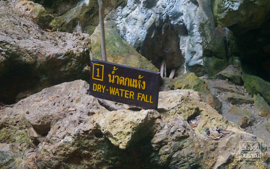 เดินลงถ้ำมานิดหน่อย สิ่งแรกที่จะเห็นคือ น้ำตกแห้ง ที่เกิดจากหินงอกหินย้อย แต่ก่อนหน้านี้เรียกว่า น้ำตกพระยานคร ครับ แต่ตอนนี้เรียกว่า น้ำตกแห้ง เพราะมันไม่มีน้ำแล้ว (อันนี้ได้ความรู้มาจากไกด์ตัวน้อย ที่พานักท่องเที่ยวมาเข้าชมครับ)