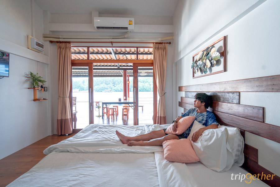 แต่ภายในห้องพักถูกรีโนเวทใหม่ให้น่านอนและสะดวกสบายยิ่งขึ้น ห้องพักแบ่งพื้นที่ได้เป็นอย่างดีเลย จากบนเตียงสามารถนอนมองวิวแม่น้ำได้แบบฟินๆ ใครที่อยากเอนหลัง ทิ้งตัวให้หายเหนื่อยรับรองเลยว่าเตียงนุ่มนอนสบายมาก