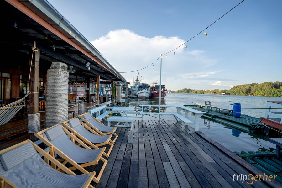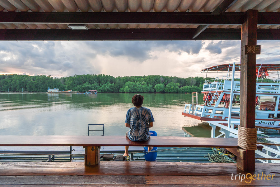 บรรยากาศที่พักอยู่ติดริมน้ำ วิวตรงข้ามมองเห็นป่าชายเลน
