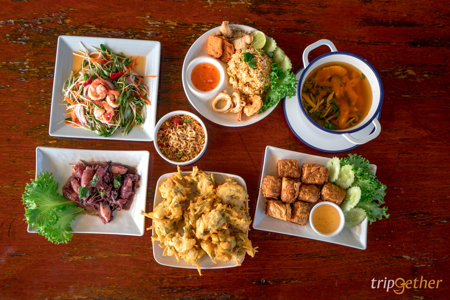 เมนูอาหารครั้งนี้เราสั่งเป็น ยำผักกระชับกุ้งสด 120 บาท ข้าวผัดประแส 60 บาท จ๊อเคย 150 บาท หมึกกะตอยผัดน้ำดำ 120 บาท แกงเผ็ดปลาน้ำดอกไม้ 150 บาท และส้มตำผักกระชับ 100 บาท เรียกได้ว่าสั่งกันมาแบบล้นโต๊ะกันไปเลย