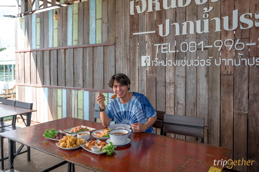 และใกล้ๆ กับบ้านพิพิธภัณฑ์ปากน้ำประแส เราแวะมาหาของอร่อยกินกันที่ ร้านเจ๊หน่อง แซ่บเวอร์ ร้านอาหารรสเด็ดเจ้าดังในชุมชน เป็นร้านอาหารเล็กๆ ด้านหน้าเป็นครัวเปิด เดินลึกเข้ามาในตัวร้านจะมีโซนที่นั่งริมน้ำ มองเห็นวิวป่าโกงกาง เรียกได้ว่าบรรยากาศดีทีเดียว