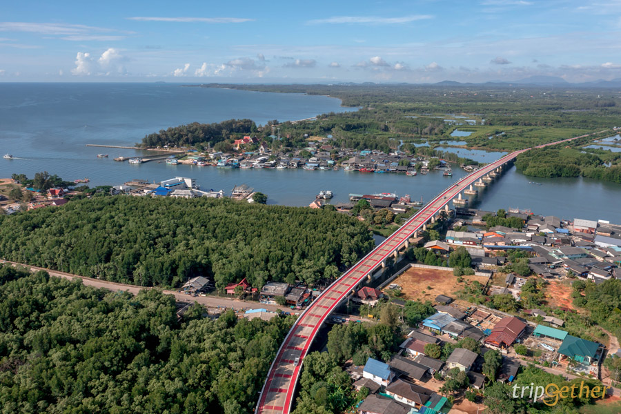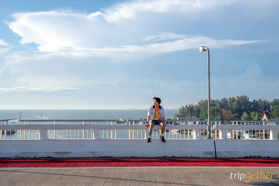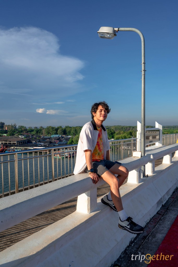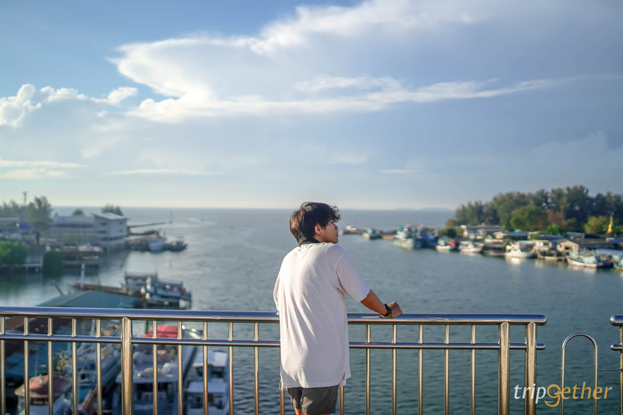 เมื่อยืนอยู่บนสะพานจะมองเห็นวิวปากอ่าวที่ขนาบไปด้วยชุมชนริมน้ำบ้านชาวประมงทั้งสองฝั่ง