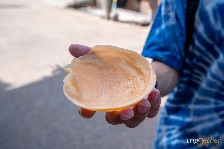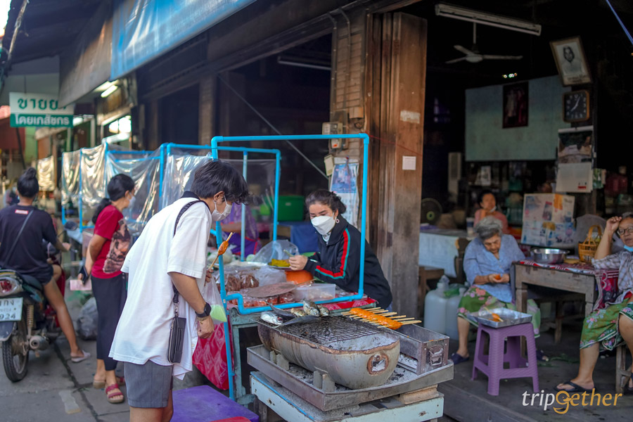 ในชุมชนยังมีขนมของกินเล่น ให้เดินชิมเดินกินเพลินๆ หลายเมนูเลย ซึ่งส่วนใหญ่เป็นขนมโบราณทั้งทองม้วนสด ขนมตะไล