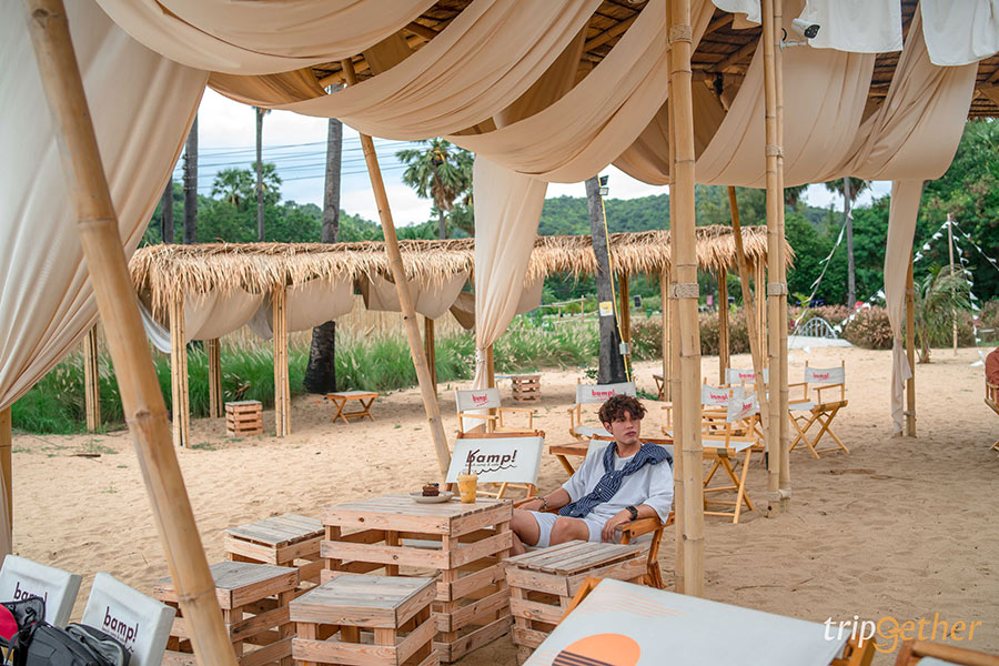 โซนที่นั่งของร้านมีทั้งแบบใต้หลังคามุงจาก มีทั้งเก้าอี้แบบเอนหลังสบายๆ และเก้าอี้แคมป์เท่ห์ๆ นอกจากนี้ยังมีเก้าอี้ชายหาดที่อยู่ด้านนอกพร้อมกับร่ม ให้ได้นั่งชิลล์ๆ มองวิวทะเลได้แบบ HD กันไปเลย