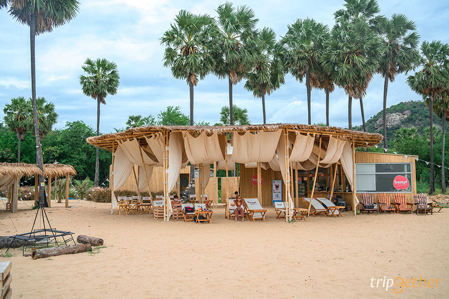 ปิดท้ายทริปด้วยการใช้เวลาสบายๆ กันที่คาเฟ่สุดชิค ริมชายหาดอย่าง BAMP :Beach camp & Cafe คาเฟ่เปิดใหม่บรรยากาศดีริมทะเลปากน้ำปราณ ตกแต่งด้วยสไตล์ Beach camp โดยทางเข้าร้านจะเป็นทุ่งหญ้าที่เต็มไปด้วยดอกหญ้า บอกเลยว่าตอนที่ลมพัดผ่าน ดอกหญ้าจะพลิ้วไปตามลม สวยมากๆ