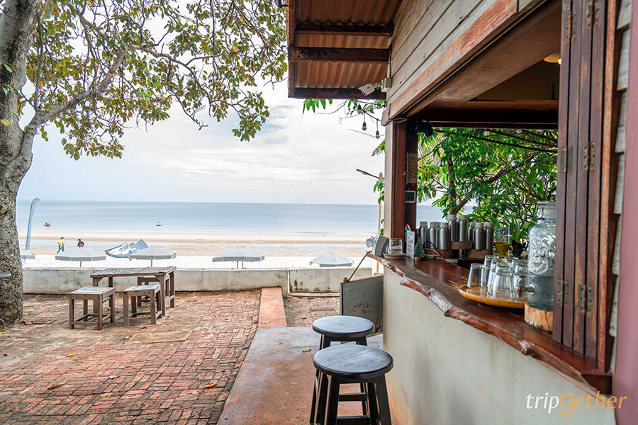 ที่นั่งในร้านส่วนใหญ่จะเป็นแบบเอาท์ดอร์ที่กระจายกันอยู่ตามพื้นที่ริมชายหาด ไม่ว่าจะเป็นบาร์ชิลล์ๆ ติดกับเคาน์เตอร์ร้าน ได้นั่งดูขั้นตอนการทำกาแฟได้แบบละเอียด หรือจะเป็นโต๊ะเก้าอี้ใต้เงาไม้ ที่มีแสงรำไรส่องลงมา บอกเลยว่าถ่ายรูปเมนูที่วางบนโต๊ะสวยมาก หรือจะเป็นที่นั่งแบบเก้าอี้ชายหาดบนหาดทรายริมทะเล นอนดูทะเลไปชิลล์ๆ หรือจะอาบแดดสบายๆ จิบกาแฟคุณภาพดีไปด้วย รับรองความสุขล้นหาดทรายกันไปเลย