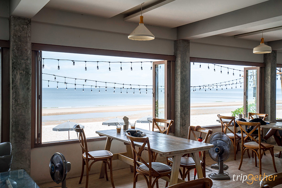 นอกจากนี้ยังมีในส่วนของโซนแบบอินดอร์เปิดโล่งที่เห็นวิวทะเลและชายหาดแบบพาโนรามาเต็มๆ อีกด้วย ซึ่งจะเปิดให้นั่งหลัง 11.00 น. เป็นต้นไปนะ