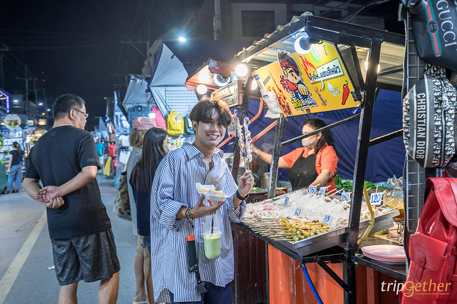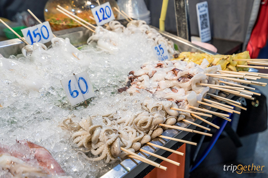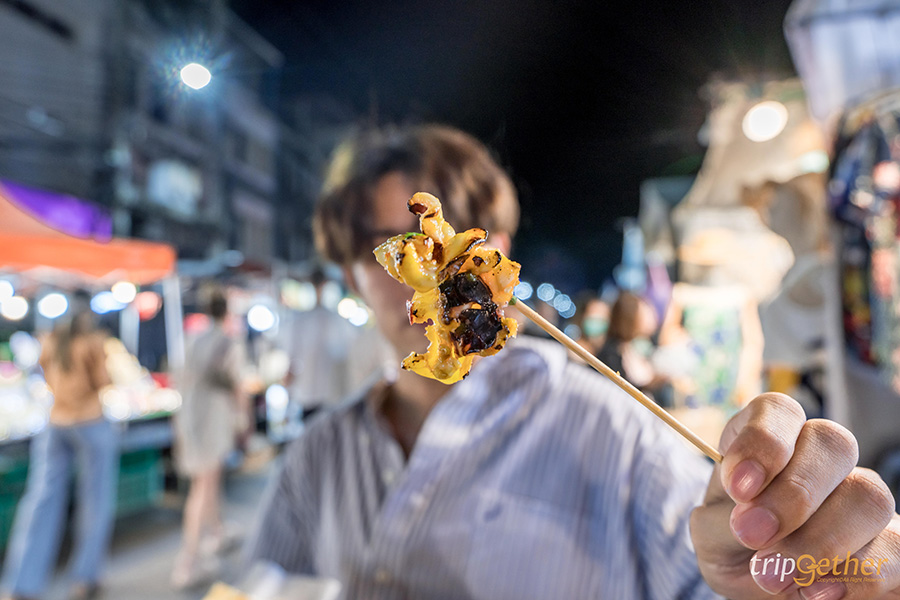 เดินไปเรื่อยๆ ก็ได้ของกินเรื่อยๆ อย่างปลาหมึกย่าง น้ำจิ้มสุดจัดจ้าน ไม้ละ 35 บาท หรือจะเป็นโรตีกรอบๆ ฉ่ำเนย หอมหวาน ก็ราคาเพียงแค่ 30 บาทเท่านั้นเอง ทั้งอิ่ม ทั้งอร่อย จบวันแรกได้สุขสุดๆ