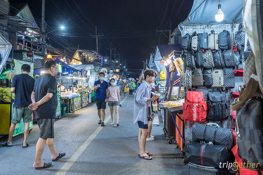 เช็คอินเก็บกระเป๋า พักผ่อนสบายๆ กันไปแล้ว เราก็ออกมาเดินเที่ยวตลาดโต้รุ่งหัวหินกันต่อ สถานที่เช็คอินในยามค่ำคืนของชาวหัวหิน นักท่องเที่ยวทั้งชาวไทยและชาวต่างชาติ ตลอดทั้งถนนมีของขายมากมาย ไม่ว่าจะเป็นอาหาร เครื่องดื่ม ทั้งที่แบบเป็นร้านรถเข็น ร้านนั่งกิน ขนม รวมทั้งของฝากน่ารักๆ เพียบ!