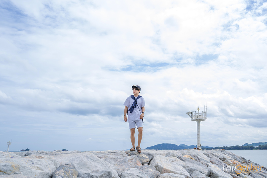 เช็คเอาท์เรียบร้อย เราก็แวะมาเช็คอินโลเคชั่นสุดเกาหลีใกล้ๆ ที่พัก ซึ่งตั้งอยู่ที่เนินเขาตะเกียบกันที่ท่าเรือเขาตะเกียบ ความสวยของที่นี่ก็คือทางเดินที่เป็นแนวหินสีขาวคุมโทนและมีหอสัญญาณเรืออยู่ตรงสุดทางเดิน จากบนแนวหินสามารถมองเห็นทั้งวิวทะเล ชายหาด รวมทั้งเขาตะเกียบได้ ไม่ว่าจะถ่ายรูปมุมไหนก็สวย เหมือนอยู่เกาหลีสุดๆ