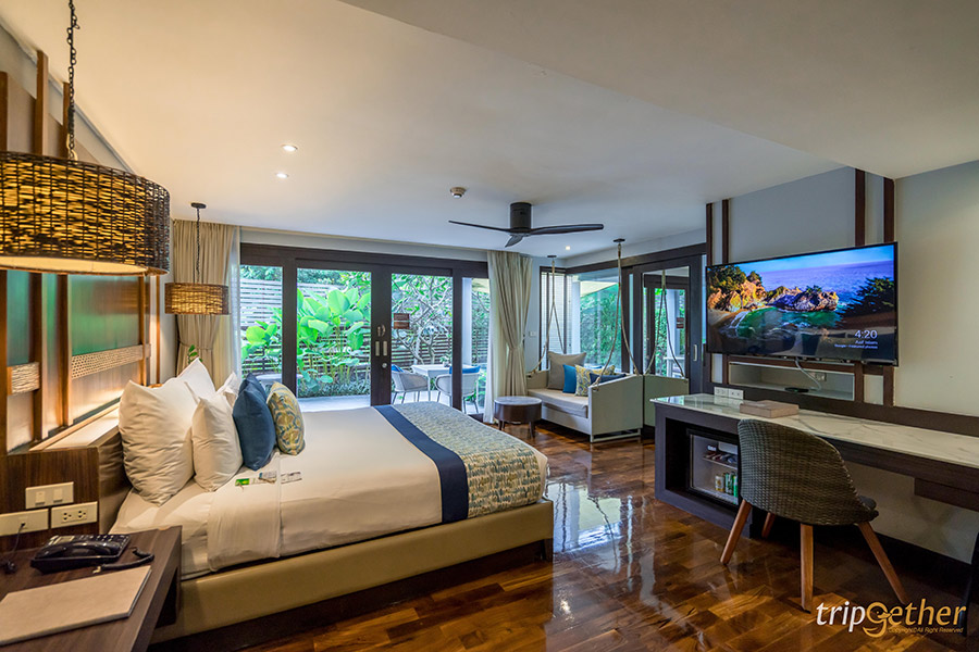 ห้องพักของที่นี่มีให้เลือกถึง 6 รูมไทป์ แต่ห้องที่เราเลือกเป็นห้องไฮไลท์ที่มีเพียงห้องเดียวเท่านั้น นั่นก็คือ ห้อง Zen Plus Jacuzzi Pool Terrace ภายในห้องเรียกได้ว่ากว้างขวางกว่า 76 ตร.ม. กันเลยทีเดียว ในด้านเฟอร์นิเจอร์และสิ่งอำนวยความสะดวกก็ครบครัน ไม่ว่าจะเป็นเตียงขนาดใหญ่ที่สามารถเลือกชนิดของหมอนได้เอง Smart TV ที่มาพร้อมกับ Netflix รวมทั้งการแบ่งสัดส่วนของห้องที่ลงตัวสุดๆ