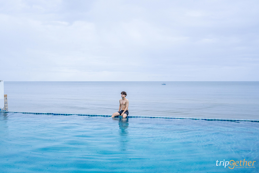 เช้าวันที่ 2 เราตื่นเช้ามาว่ายน้ำที่สระริมทะเล บอกเลยว่าบรรยากาศดีมากๆ ทะเลสีครามสงบนิ่ง มีลมอ่อนๆ พัดมา แถมยังได้รูปสวยๆ ไว้อัปลงโซเชียลอีกต่างหาก