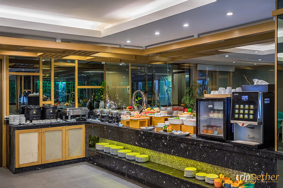 หลังจากอาบน้ำแต่งตัวแล้ว ก็มากินอาหารเช้ากันต่อ ไลน์บุฟเฟ่ต์อาหารเช้าของที่พัก จัดเต็มเมนูอาหารเพียบ มีทั้งอาหารไทย อาหารนานาชาติ รวมทั้งของรองท้อง ทั้งขนมปังปิ้ง โยเกิร์ต สลัดผักผลไม้ หรือจะเป็นขนมปังชุบไข่ก็มี เติมพลังตอนเช้าก่อนออกไปเที่ยวกันต่อ