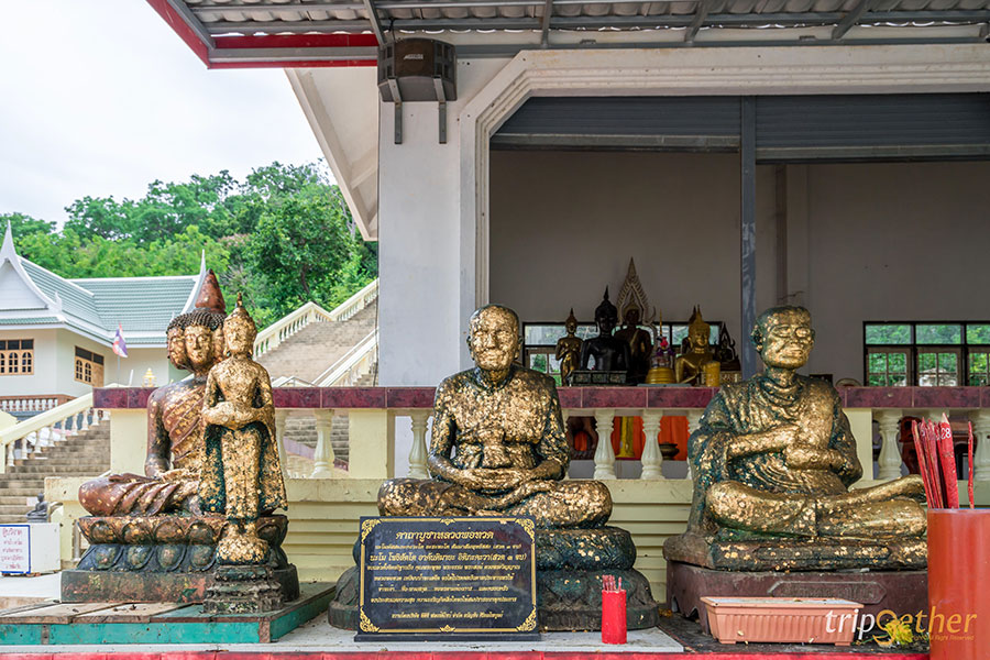 ด้านล่างของวัดเขาตะเกียบ ยังมีจุดไหว้มากมาย ไม่ว่าจะเป็นองค์เจ้าแม่กวนอิมที่ต้องลอดประตูนำโชคไป รวมทั้งพระพุทธรูปปางต่างๆ และรูปเคารพของเกจิอาจารย์ชื่อดังหลายองค์ให้ได้ปิดทองเพื่อความเป็นสิริมงคล