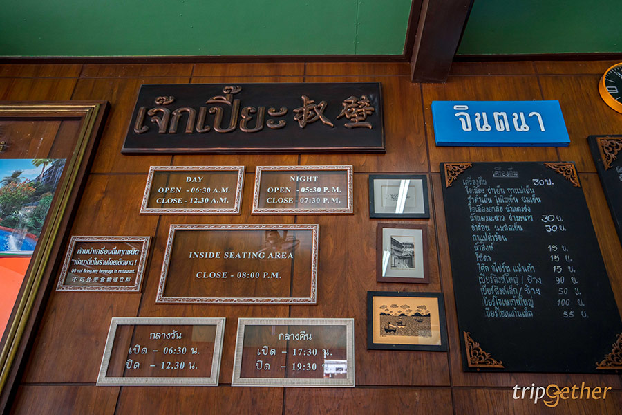 ภายในร้านเป็นแบบเปิดโล่ง มีลมพัดเข้ามาอยู่ตลอด ทำให้บรรยากาศภายในร้านเย็นสบาย นอกจากนี้ยังได้กลิ่นอายของความเก่าแก่และเสน่ห์ของวิถีชีวิตในอดีตอีกด้วย