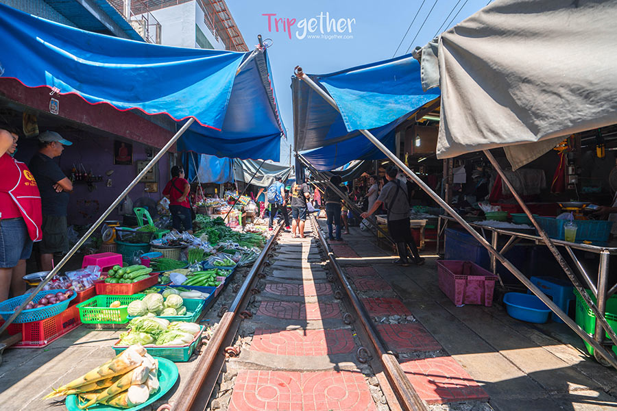 Day 1 : เราออกเดินทางกันในช่วงสายๆ จากกรุงเทพใช้เวลาเดินทางประมาณ 1 ชั่วโมงนิดๆ เราก็มาถึงสถานที่แรกของเราในวันนี้ที่สถานีรถไฟแม่กลอง เมื่อมาชมความสถานที่ท่องเที่ยวสุดอันซีนกันที่ตลาดร่มหุบ ตลาดนัดกลางแจ้งสุดอันซีนที่จะหุบร่มเก็บของเพียงเสียววินาทีเมื่อมีรถไฟผ่าน ซึ่งนักท่องเที่ยวที่สนใจสามารถแวะมาชมได้ทั้งแต่ช่วงเวลา 08.30 น., 11.10 น., 14.30 น. (รถไฟวิ่งเข้าสถานีแม่กลอง) และ 6.20 น., 9.00 น., 11.30 น., 15.30 น. (รถไฟออกจากสถานีแม่กลอง)