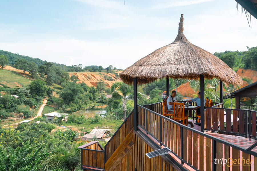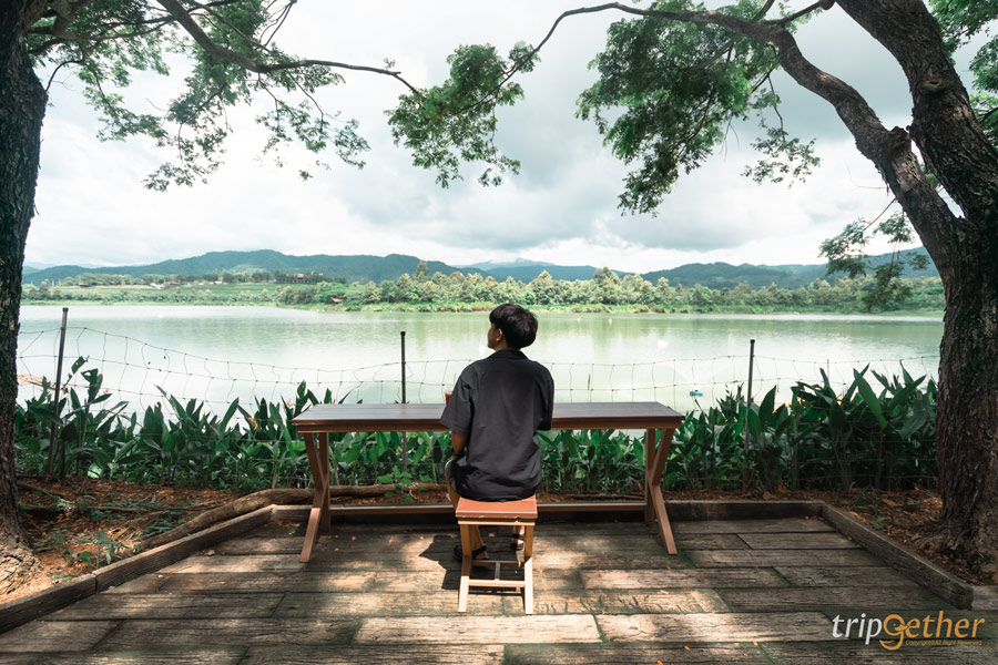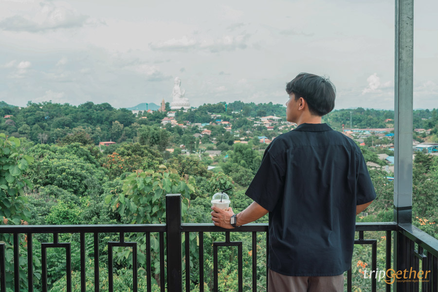ที่เป็นไฮไลท์อีกหนึ่งอย่างของที่นี่เลยก็คือ ที่นั่งที่สามารถมองเห็นวิวหมู่บ้าน ภูเขา และพระโพธิสัตว์กวนอิมองค์ใหญ่ของวัดห้วยปลากั้งได้ บอกเลยว่ามุมนี้คือดีสุดๆ เหมาะกับการนั่งปล่อยใจมากๆ