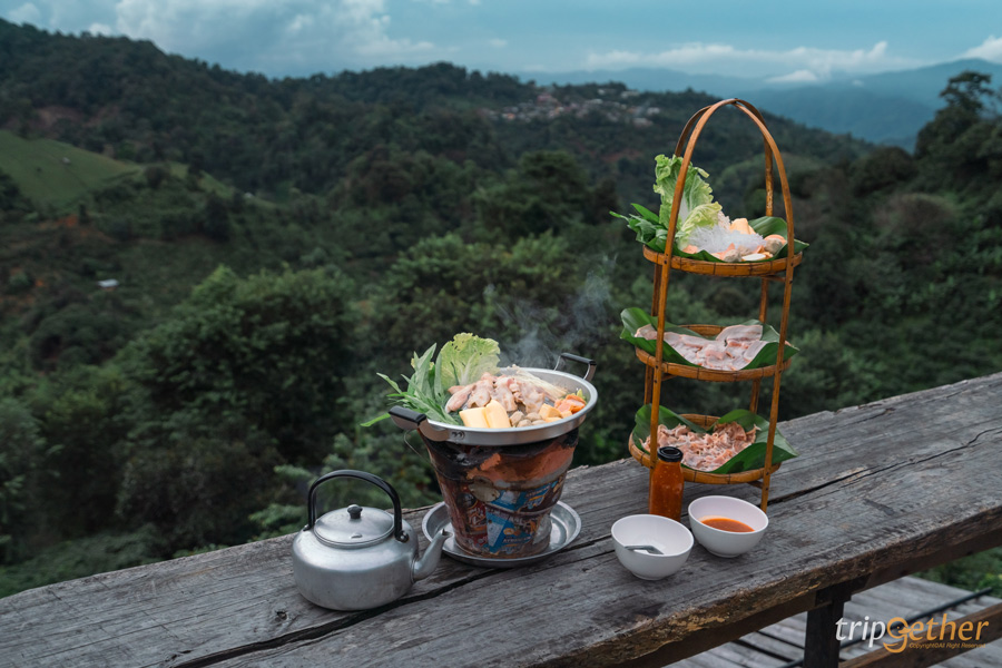 อีกทั้งในช่วงเย็นทางไร่กาแฟครอบครัวมะ ยังมีชุดหมูกระทะให้บริการเป็นอาหารเย็นอีกด้วย ราคาอยู่ที่ชุดละ 459 บาท มีทั้งหมู หมูสามชั้น เต้าหู้ไข่ ลูกชิ้น ไส้กรอก วุ้นเส้น และผักนานาชนิด มาถึงโลเคชั่นฟีลดีแบบนี้ทั้งที ก็ต้องจัดมาเลยสักชุด นั่งมองวิวไป กินหมูกระทะไป แถมอากาศก็เย็นสบาย บอกเลยว่าฟินมากๆ