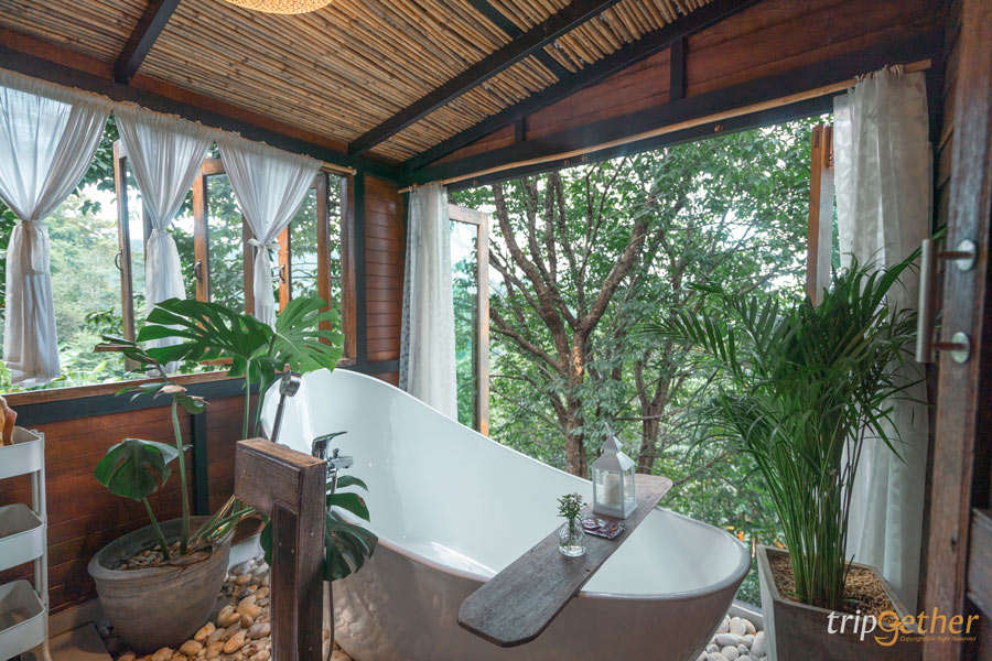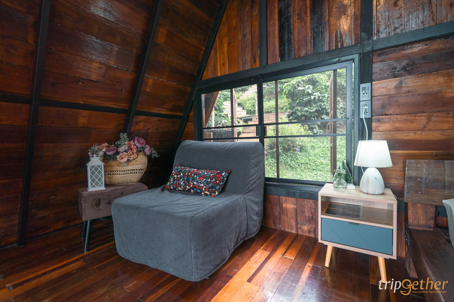 ห้องพักที่เราเลือกในทริปนี้คือหนึ่งในห้องไฮไลท์ของไร่กาแฟครอบครัวมะ นั่นก็คือบ้านพ่อมะ ซึ่งอยู่คู่กับบ้านแม่มะ ความพิเศษของบ้านพ่อมะและเแม่มะ คือเป็นบ้านที่อยู่ห่างออกมาจากส่วนห้องพักอื่นๆ ภายในห้องมีพื้นที่กว้างขวาง อีกทั้งยังมีอ่างอาบน้ำที่สามารถนอนแช่ พร้อมกับมองวิวภูเขาและม่านหมอกได้แบบเต็มๆ เท่านั้นยังไม่พอ เพราะบ้านพ่อมะ แม่มะ มีต้นนางพญาเสือโคร่งขึ้นอยู่หน้าบ้านเลยด้วย ถ้ามาในช่วงเดือนธันวาคม – มกราคม ก็จะได้ดื่มด่ำกับความสวยงามแบบเป็นส่วนตัวสุดๆ ซึ่งราคาของห้องพัก 2 ห้องนี้อยู่ที่ 2,990 บาท รวมอาหารเช้า