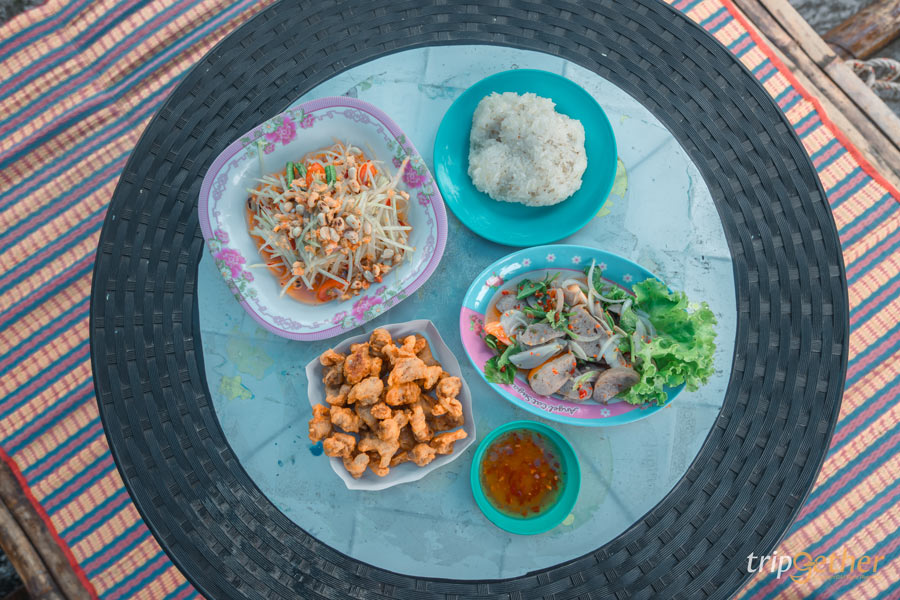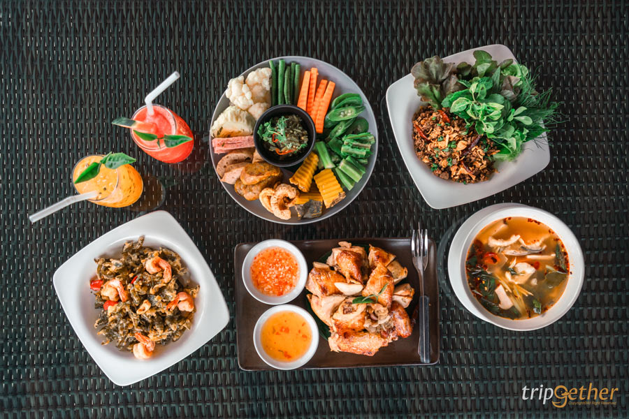 เมนูอาหารจะเป็นเมนูอาหารไทย อาหารอีสาน อย่างส้มตำ ไก่ย่าง ยำ รวมทั้งอาหารตามสั่ง แถมราคาก็เป็นราคาเหมือนกับร้านอาหารทั่วๆ ไปเลย แต่ถ้าเทียบกับบรรยากาศแล้ว ต้องบอกเลยว่าคุ้มมากๆ