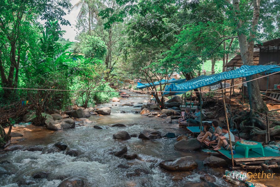 ที่นั่งของร้านเป็นแพแบบติดริมน้ำเลย เหมาะกับการมาพักกลางวัน นั่งฟังเสียงน้ำสุดๆ