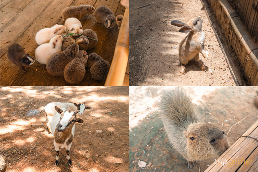 อีกส่วนจะเป็นโซนมินิซู ที่ได้รวบรวมเอาสัตว์เล็กนานาชนิดให้ได้ชมความน่ารักกันแบบใกล้ชิด ไม่ว่าจะเป็นกระต่ายที่แค่เราเดินไปหา น้องก็มายืนรอขอแครอทกันเพียบ หนูแกสบี้ตัวจิ๋ว แพะแคระ ม้าแคระ ไปจนถึงคาปิบาร่า และอื่นๆ อีกหลายชนิด เรียกได้ว่ามาจุดเดียว แต่เดินได้แบบเพลินๆ กันเลย