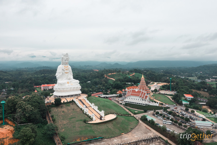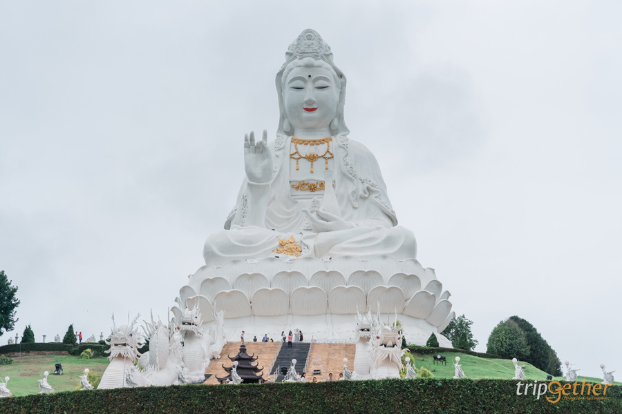 พักครึ่งช่วงเช้าเรียบร้อย ก็ได้เวลาเที่ยวกันต่อ โดยช่วงหลังจากนี้เราจะเริ่มออกมานอกเมืองกันบ้างและสถานที่ต่อมาก็คือ วัดห้วยปลากั้ง วัดดังอีกแห่งหนึ่งของเมืองเชียงราย ที่มีไฮไลท์คือพระโพธิสัตว์กวนอิมองค์สีขาวที่ตั้งตระหง่านอยู่ท่ามกลางขุนเขา