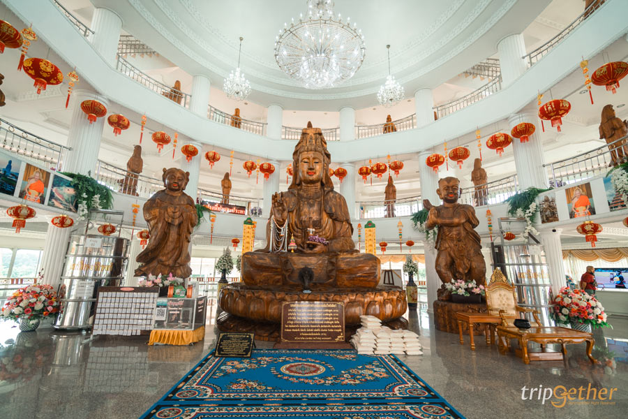 พระโพธิสัตว์กวนอิมองค์นี้มีความสูงเทียบเท่าตึก 26 ชั้น ซึ่งเราสามารถซื้อบัตรขึ้นไปยังชั้น 25 และ 26 เพื่อชมวิวประตูมังกรและจิตรกรรมปูนปั้นแบบจีนได้ ราคาอยู่ที่คนละ 20 บาทเท่านั้น