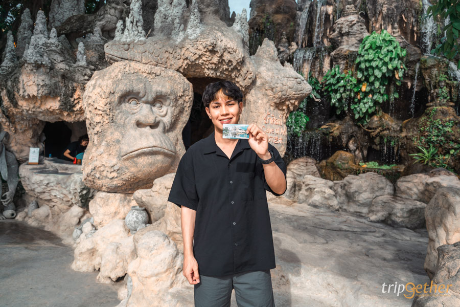 มาถึงแล้วก็ต้องมาถ่ายรูปเช็คอินกันที่มุมไฮไลท์กันสักหน่อย นั่นก็คือมุมทางเดินด้านหน้าอุโบสถของวัด โดยมุมนี้เป็นการจำลองทางเดินผ่านเหนือขุมนรก ซึ่งจะมีมือนับร้อยๆ ยื่นขึ้นมา บอกเลยว่าน่าตื่นตาตื่นใจสุดๆ (แต่แอบกระซิบว่ามุมนี้อาจจะต้องรอต่อคิวถ่ายรูปนิดหน่อยนะ เพราะคนเยอะมากๆ)