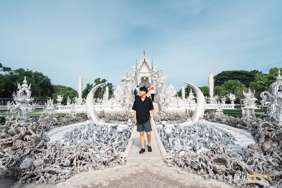 ออกจากสนามบินแล้ว เราก็ปักหมุดไปที่แรกของทริปนี้กันเลย นั่นก็คือ วัดร่องขุ่น วัดดังของเมืองเชียงรายที่นอกจากจะโด่งดังจนมีนักท่องเที่ยวชาวไทยมาเช็คอินเยอะแล้ว ยังมีนักท่องเที่ยวจากต่างประเทศที่แวะเวียนเข้ามาแทบจะตลอดๆ เลยด้วย ซึ่งนักท่องเที่ยวชาวต่างชาติจะรู้วัดร่องขุ่นกันในชื่อของ วัดขาว (white temple)