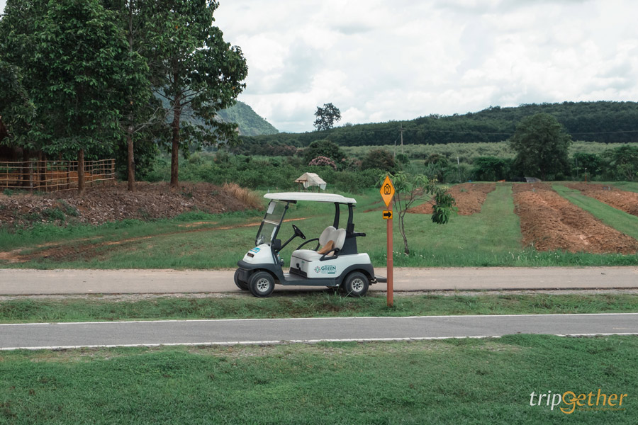 การเดินทางในสิงห์ปาร์ค เชียงรายจะมีอยู่ 2 แบบหลักๆ นั่นก็คือนั่งรถรางแบบฟาร์มทัวร์ และเช่ารถกอล์ฟขับเที่ยว ซึ่งสามารถติดต่อสอบถามได้จากด้านหน้าทางเข้าสิงห์ปาร์ค เชียงรายได้เลย และในรอบนี้เราเลือกการเช่ารถกอล์ฟ เพราะนอกจากจะสามารถขับเที่ยวแบบเป็นส่วนตัวแล้ว ยังสามารถแวะพักตามจุดต่างๆ ได้แบบสบายๆ อีกด้วย