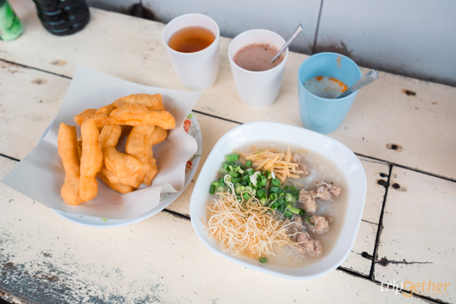 ส่วนเมนูของร้านก็จะเน้นเป็นเมนูอาหารเช้าที่เราคุ้นชินกัน อย่าง น้ำเต้าหู้ ปาท่องโก๋ ชา กาแฟ ไปจนถึงไข่ลวก และโจ๊กหมูสับ แถมราคายังถูกจนน่าตกใจ ซึ่งโจ๊กที่เสิร์ฟมาแบบถ้วยใหญ่ ราคาแค่ 35 บาทเท่านั้น ปาท่องโก๋ก็ตัวละ 2 บาท บอกเลยว่าที่เราสั่งมาทั้งหมด ราคาอยู่ที่ 60 บาทเท่านั้น!