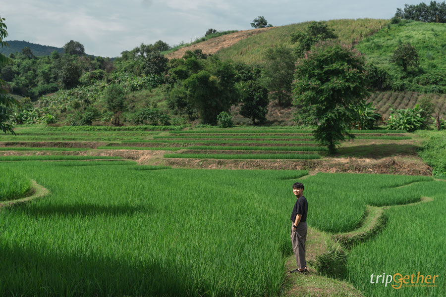 แถมใกล้ๆ กับปางช้าง ยังมีจุดถ่ายรูปสวยๆ อีกจุด นั่นก็คือ นาขั้นบันไดที่เขียวขจีให้ได้ไปเดินเล่น โพสท่าสวยๆ อีกด้วย
