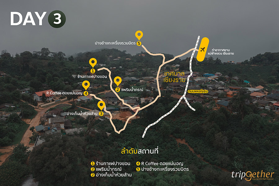 เที่ยวในเมืองกันแบบจัดเต็ม 2 วันแล้ว ก็ได้เวลาขึ้นดอยไปจัดเต็มความกรีนซีซั่นของเชียงรายกัน ซึ่งจุดหมายของเราก็คือ บ้านปางขอน โลเคชั่นที่นอกจากจะเป็นแหล่งปลูกกาแฟชื่อดังแล้ว ยังเต็มไปด้วยความสงบ ความอุดมสมบูรณ์ และวิถีชีวิตที่มีเสน่ห์ของกลุ่มชาติพันธุ์ต่างๆ ซึ่งระยะเวลาจากตัวเมืองมาที่นี่จะอยู่ที่ราวๆ ชั่วโมงนิดๆ และส่วนของเส้นทางก็เรียกได้ว่าขับรถมาได้ค่อนข้างสะดวกมากๆ