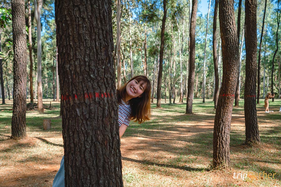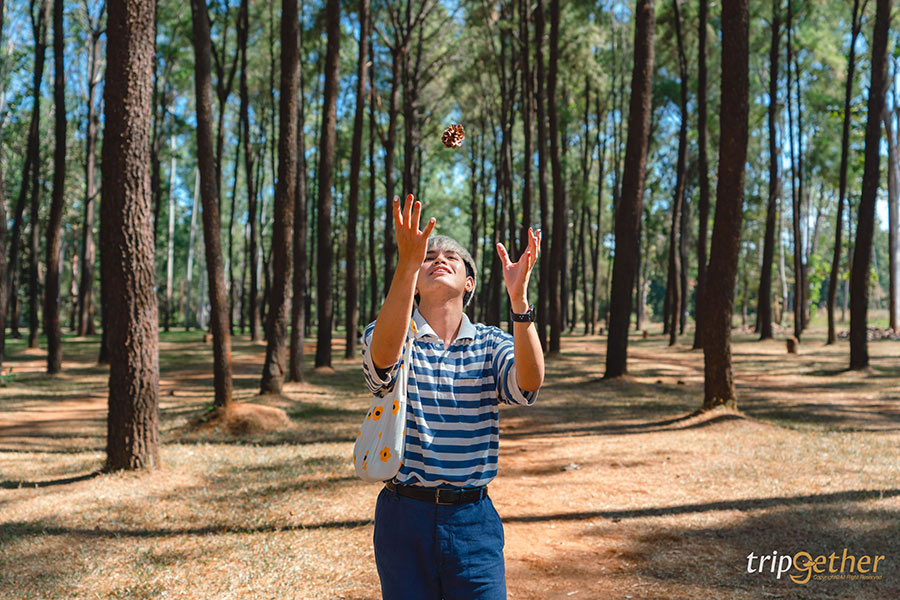 โพสท่าถ่ายรูปได้รัวๆ โยนลูกสนเล่น แอบหลังต้นสน ช่างภาพกดชัตเตอร์รัวๆ เลย